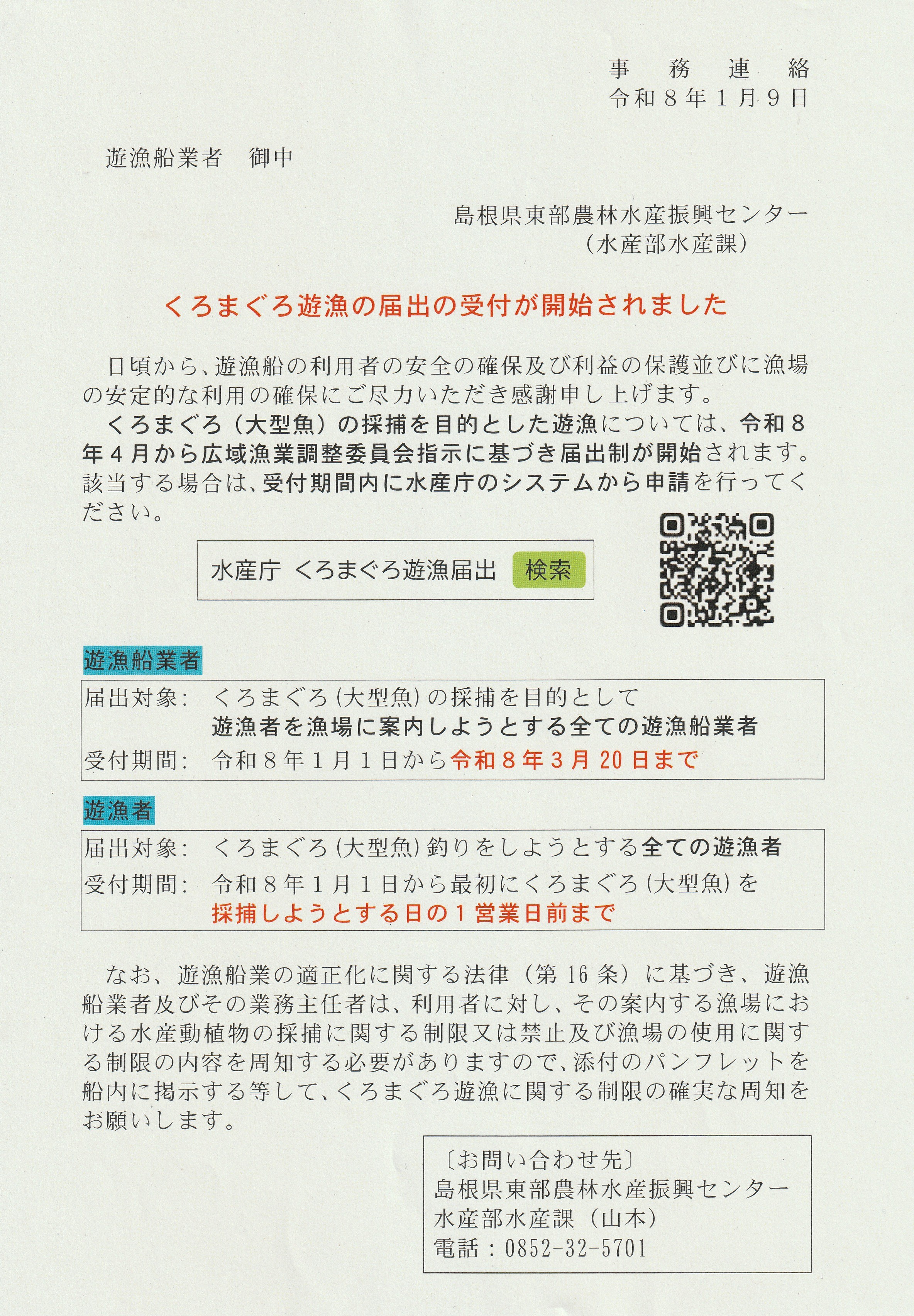くろまぐろ遊漁の届出の受付が開始されました